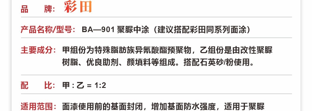 彩田BA-901M防腐聚脲中涂