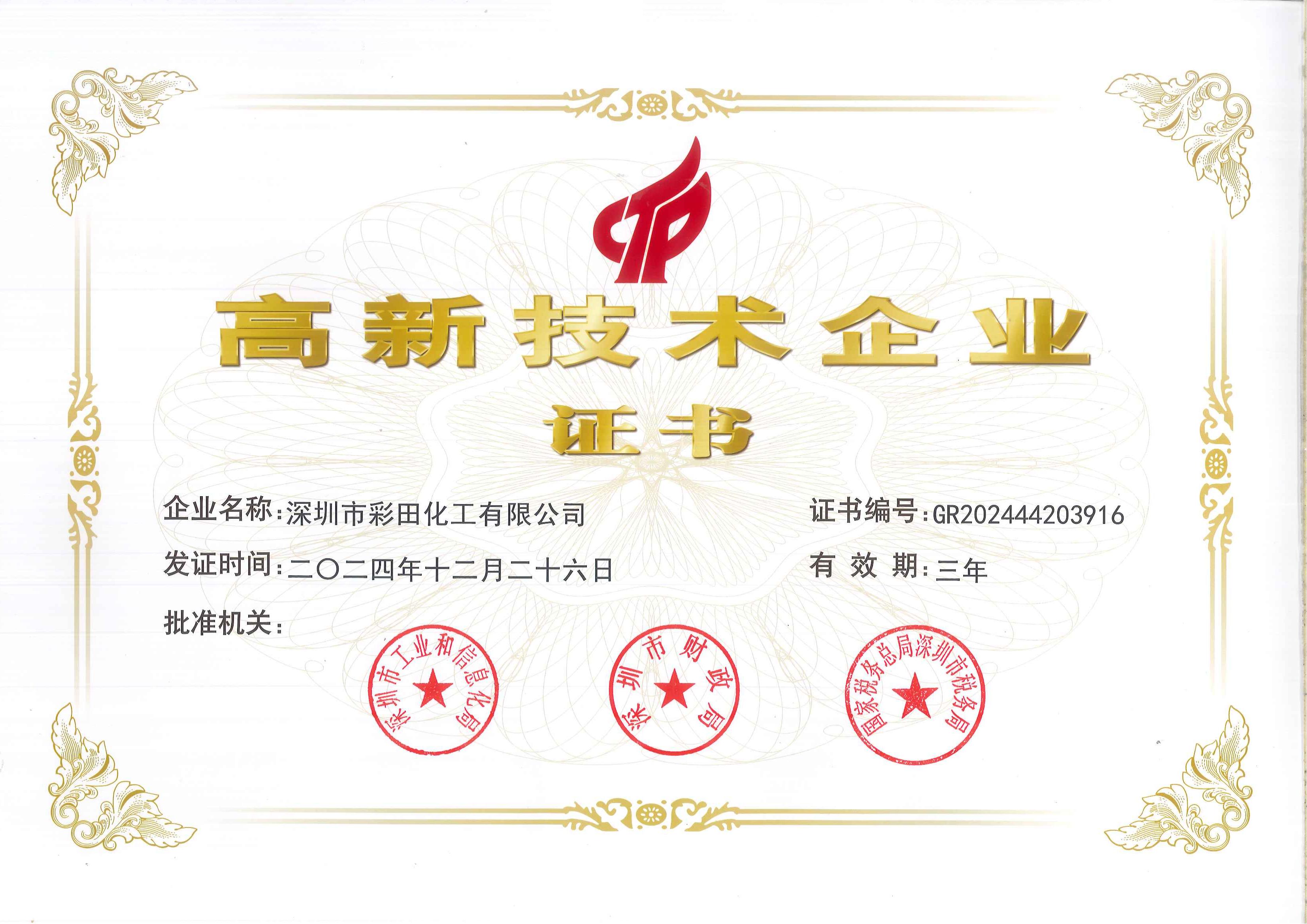 作為國家級資質認證,高新技術企業證書在項目招投標中形成顯著加分項。彩田化工憑借該資質,成功中標多個標桿工程。在資本層面,企業估值較認證前提升35%。