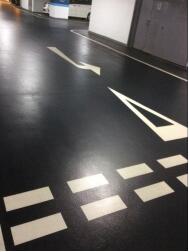 l 停車場內(nèi)的環(huán)氧地坪上行車要注意速度不可過快,以免爭剎車行為造成剪切發(fā)熱過高,從而使得環(huán)氧地坪漆瞬間軟化(環(huán)氧地坪漆的軟化溫度在80℃左右,因此其使用環(huán)境溫度一般控制在50℃以下)并在剪切力的作用下產(chǎn)生難以清洗的污痕。