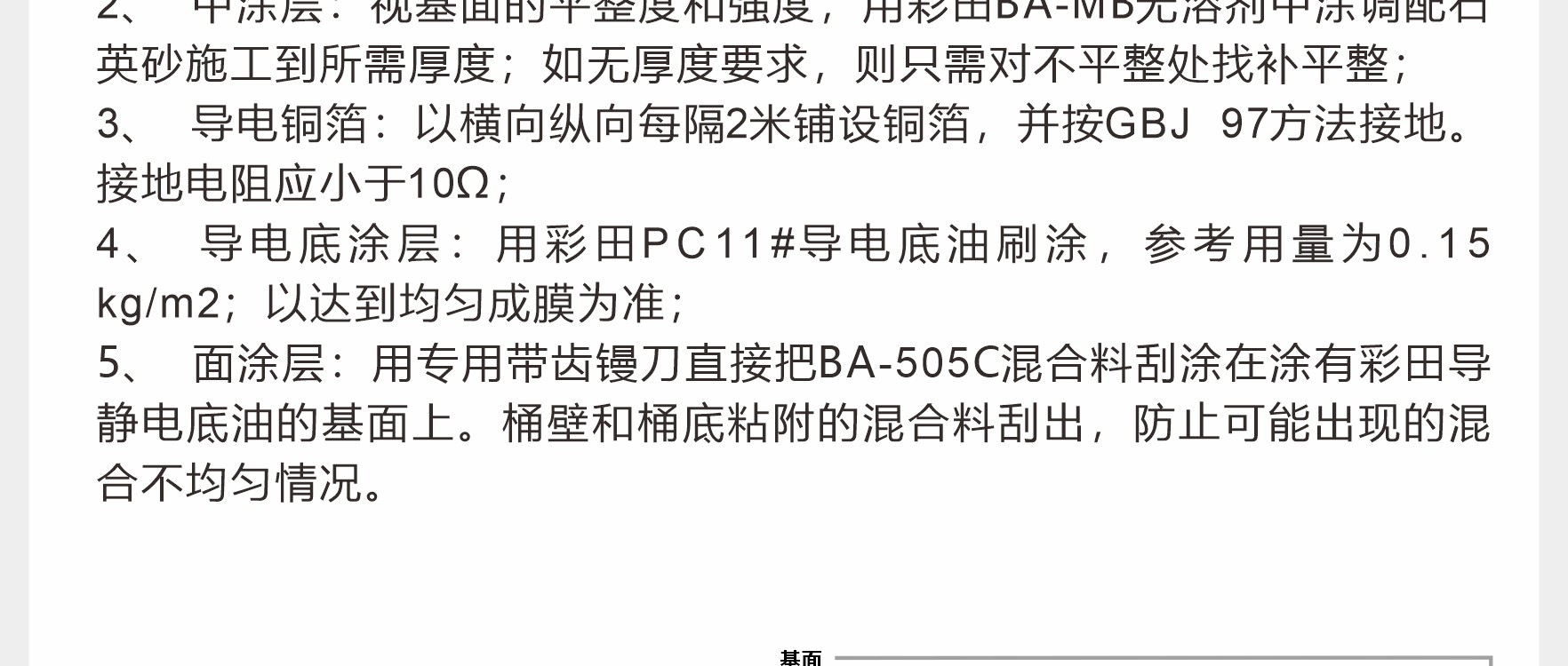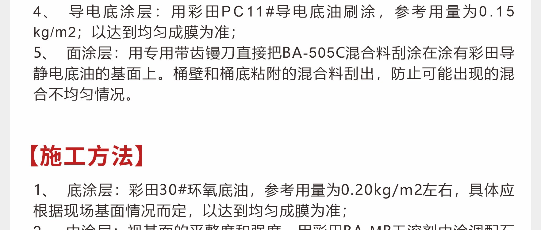彩田BA-CFM高固含環氧防靜電中涂